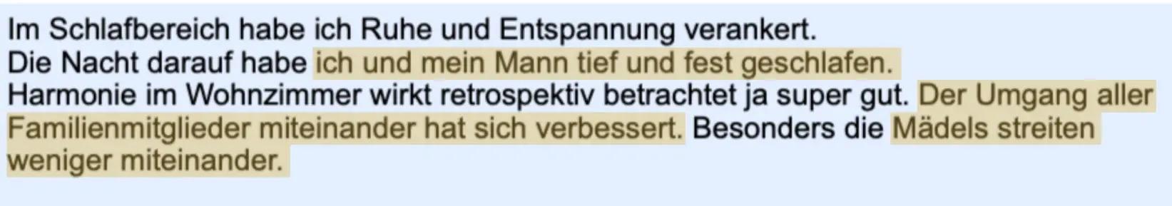Seit ich mit SSA arbeite, hat sich die Energie in meinem Zuhause so stark verändert. Es ist eine spürbare Ruhe & Klarheit entstanden. Mein Energielevel ist deutlich stabiler & meine Schlafsituation hat sich deutlich verbessert. Meine wiederkehrende Migräne hat spürbar abgenommen.