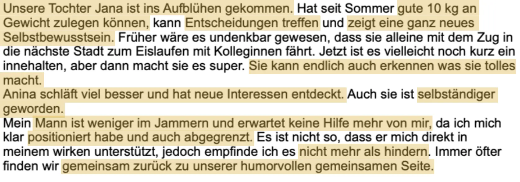 Damit wird es möglich, dass KlientInnen im Trancezustand selbst erleben, warum ein innerer Persönlichkeitsanteil, das innere Kind oder eine Ahnenenergie, eine Person gerade am Weiterkommen blockiert.
